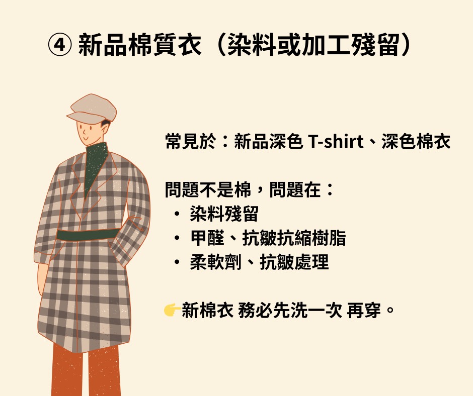 #深色衣服染料過敏 #棉T甲醛 #衣服加工致敏
