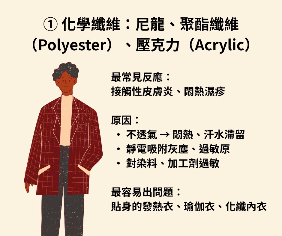 #化纖皮膚過敏 #聚酯纖維皮膚癢 #尼龍過敏 #壓克力纖維過敏